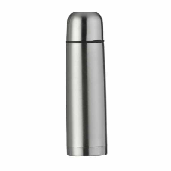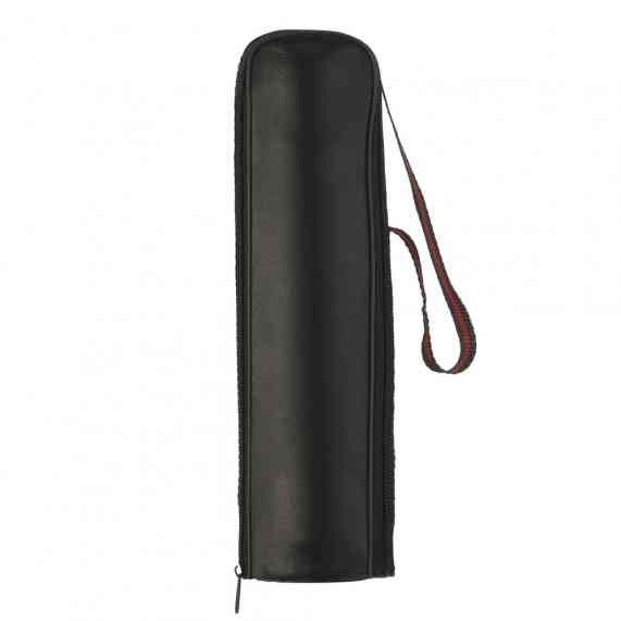 Garrafa térmica 500ml em inox com tampa rosqueável, tampa interna em plástico resistente(basta um clique para abrir ou fechar). Acompanha capa protetora de couro sintético com alça de nylon.