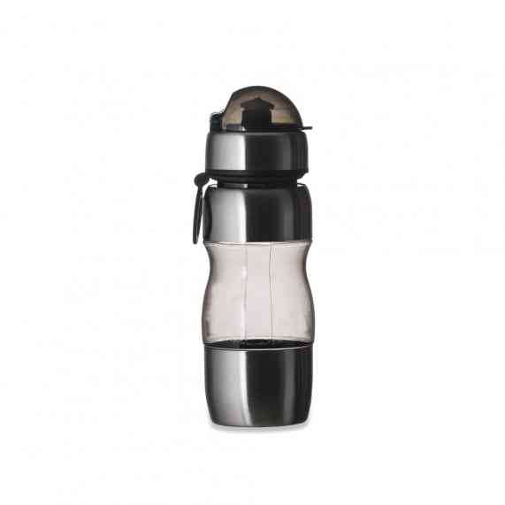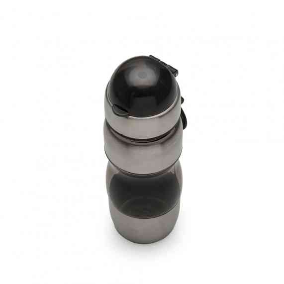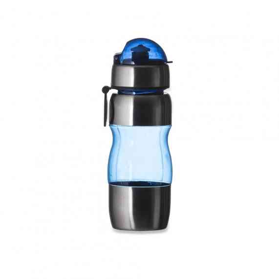 Squeeze de alumínio 450ml com alça plástica e detalhes coloridos. Possui tampa de bico e tampa protetora de plástico resistente.