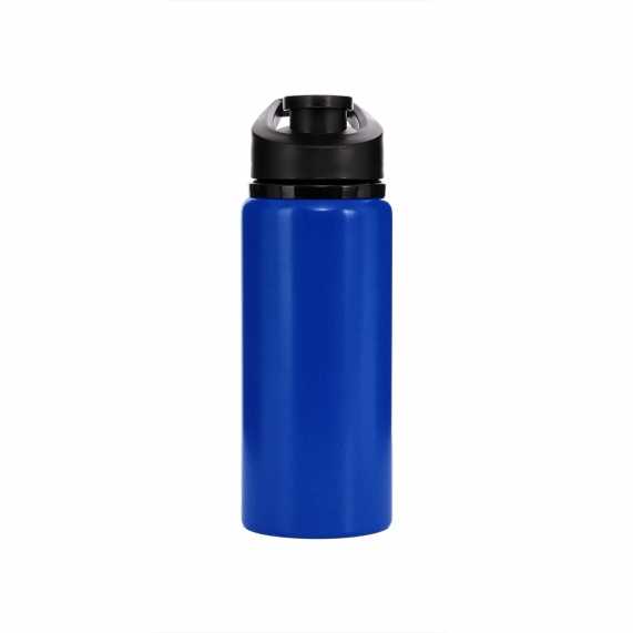 Squeeze de alumínio com capacidade de 600ml com acabamento leitoso fosco, contém tampa plástica rosqueável, alça e tampa protetora para o bocal.