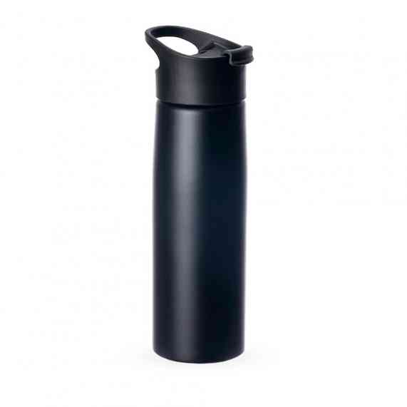Squeeze alumínio de 750ml com pintura fosca. Squeeze com tampa plástica rosqueável, alça e tampa protetora para o bocal.