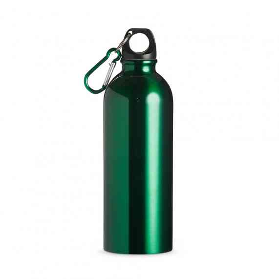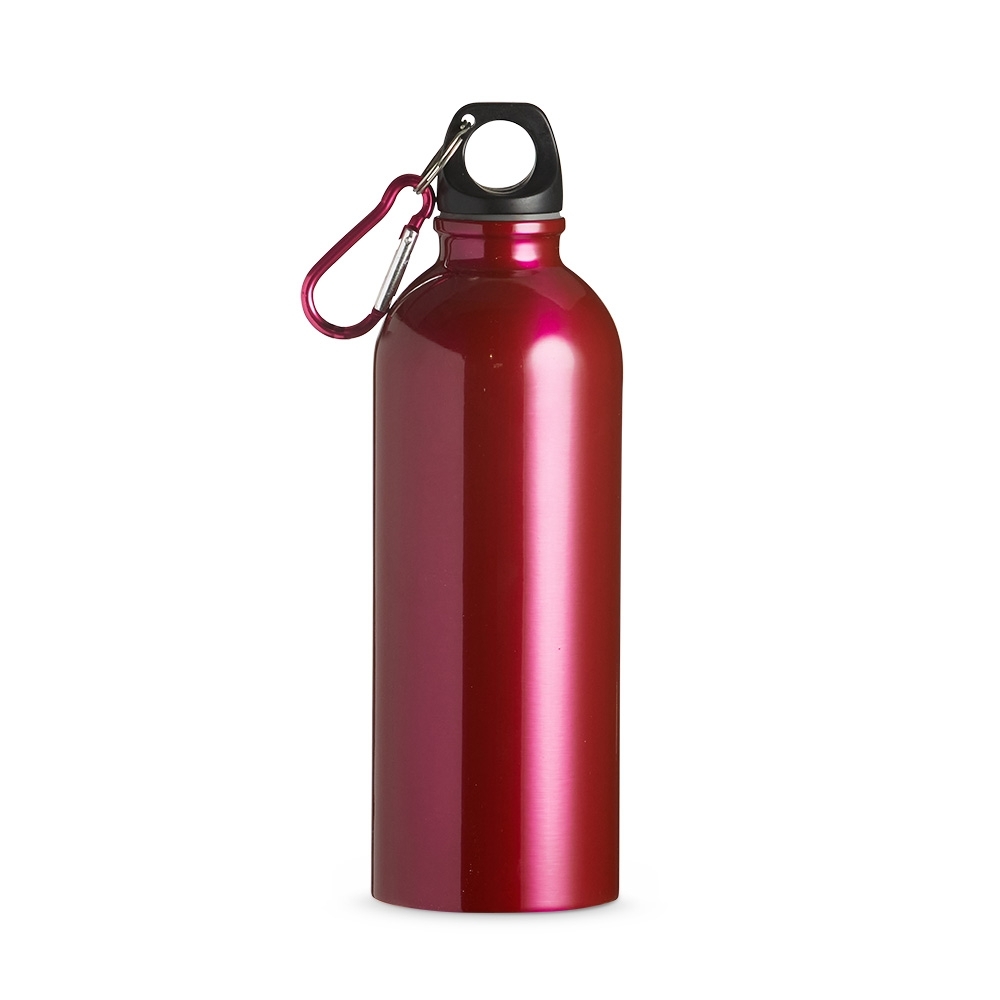 Squeeze 500ml de inox com pintura metalizada, tampa rosqueável e acompanha um segundo bico com mosquetão (não é térmico).