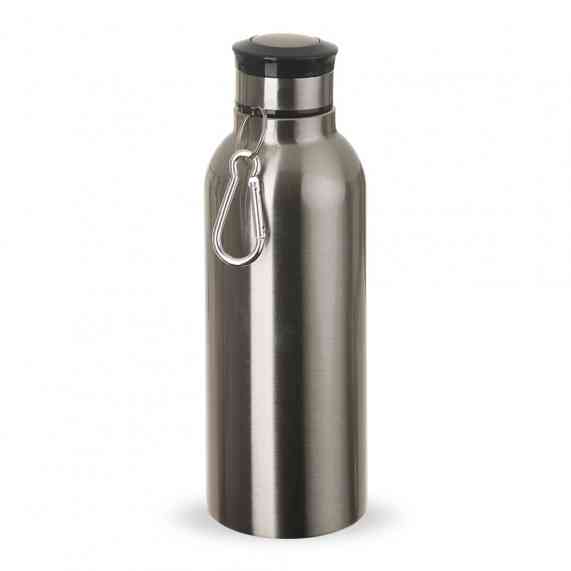 Squeeze Inox 700ml com pintura colorida e detalhes em prata. Possui tampa rosqueável e acompanha chaveiro mosquetão.