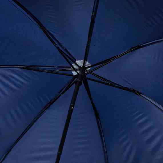 Guarda-chuva manual de tecido em nylon. Possui 8 varetas e estrutura em aço, pegador, botão de abertura e alça de nylon. Acompanha capa protetora.