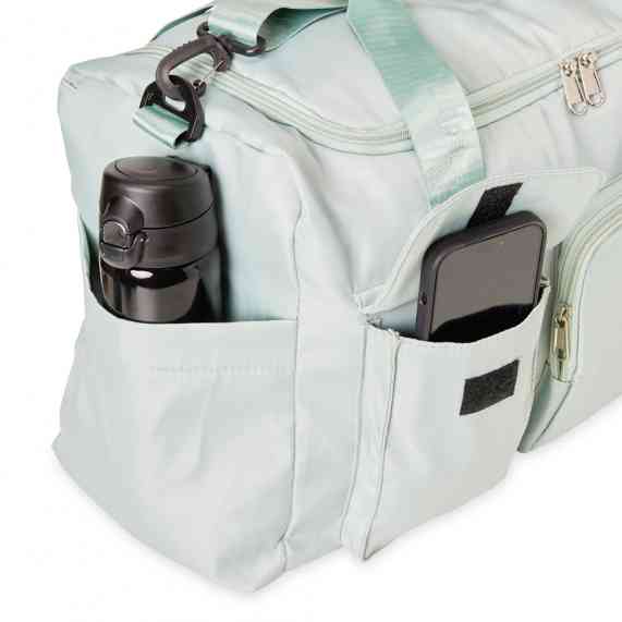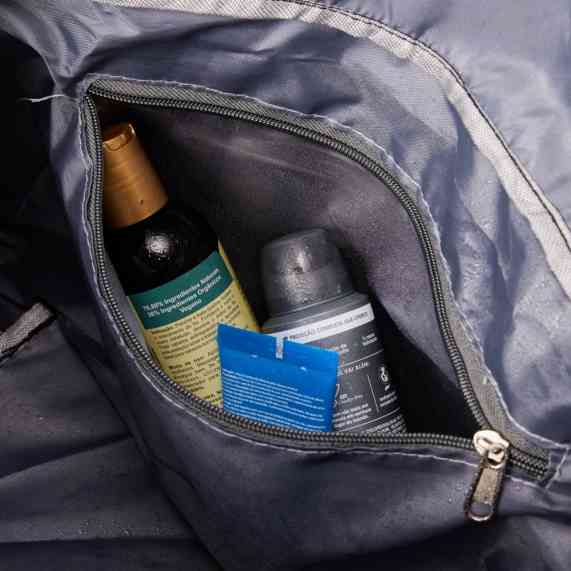 Bolsa de viagem 28 litros em poliéster de impacto impermeável com cinco compartimentos, sendo um deles exclusivos para tênis. Compartimento principal com bolso de zíper exclusivo para itens molhados. Com bolso lateral e duas alças de mãos, a bolsa contém alça transversal removível e bolso para engate em malas de viagem.