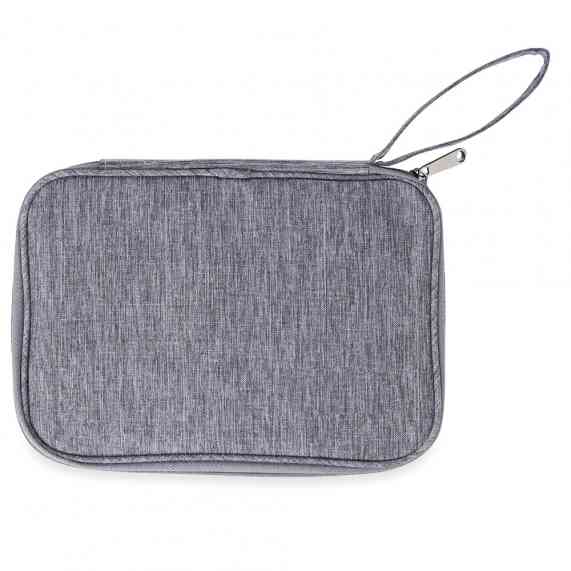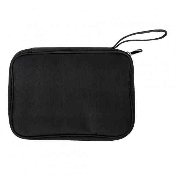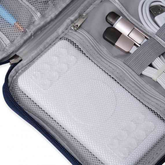 Estojo para kit tecnológico a prova d’água de poliéster possui 5 compartimentos com elástico e uma pequena tela de proteção, 3 elásticos centralizados, um bolso de tela com zíper e uma alça de mão. OBS.: ACESSÓRIOS NÃO INCLUSOS, IMAGENS MERAMENTE ILUSTRATIVAS.