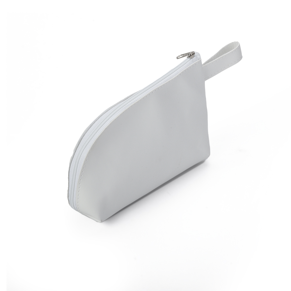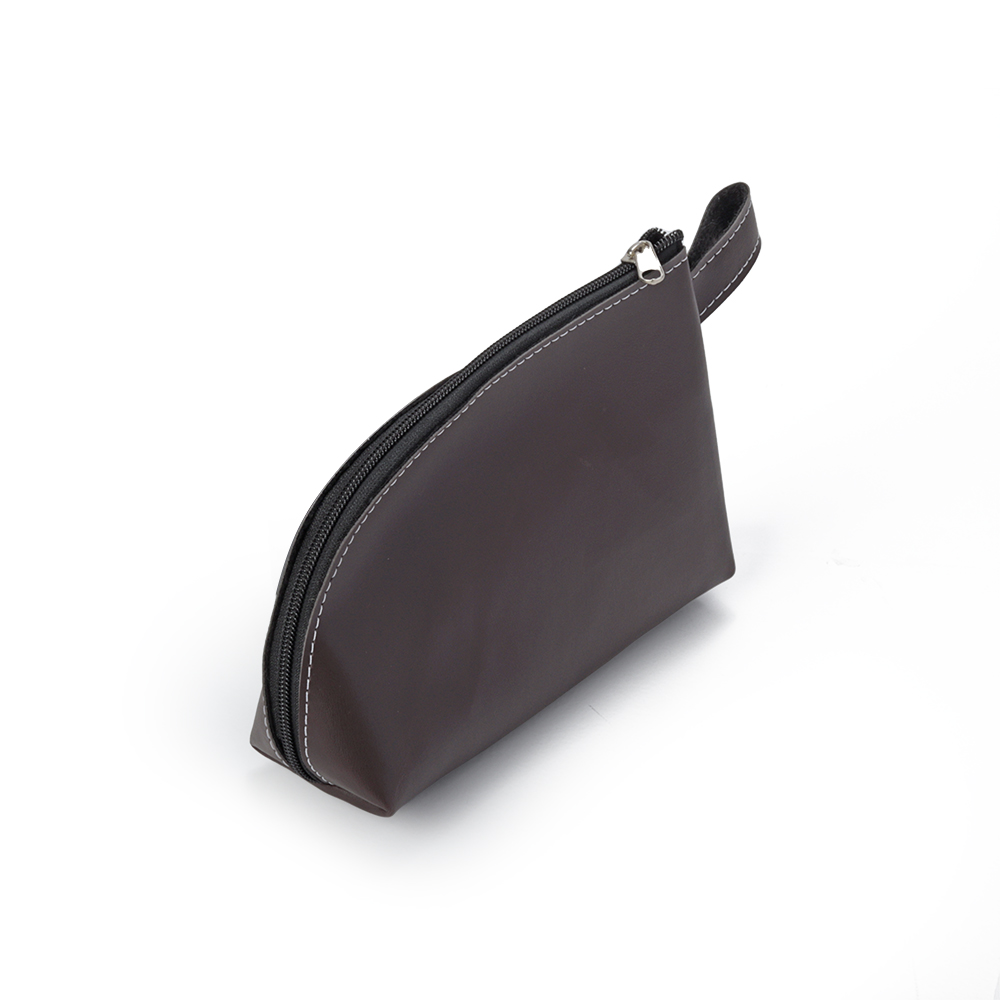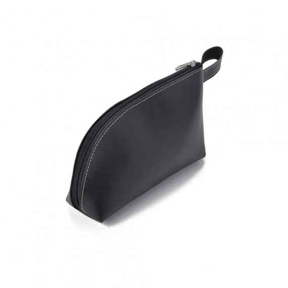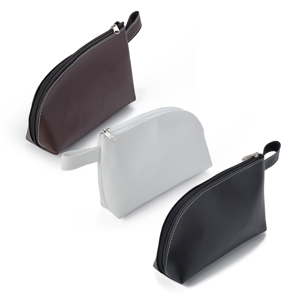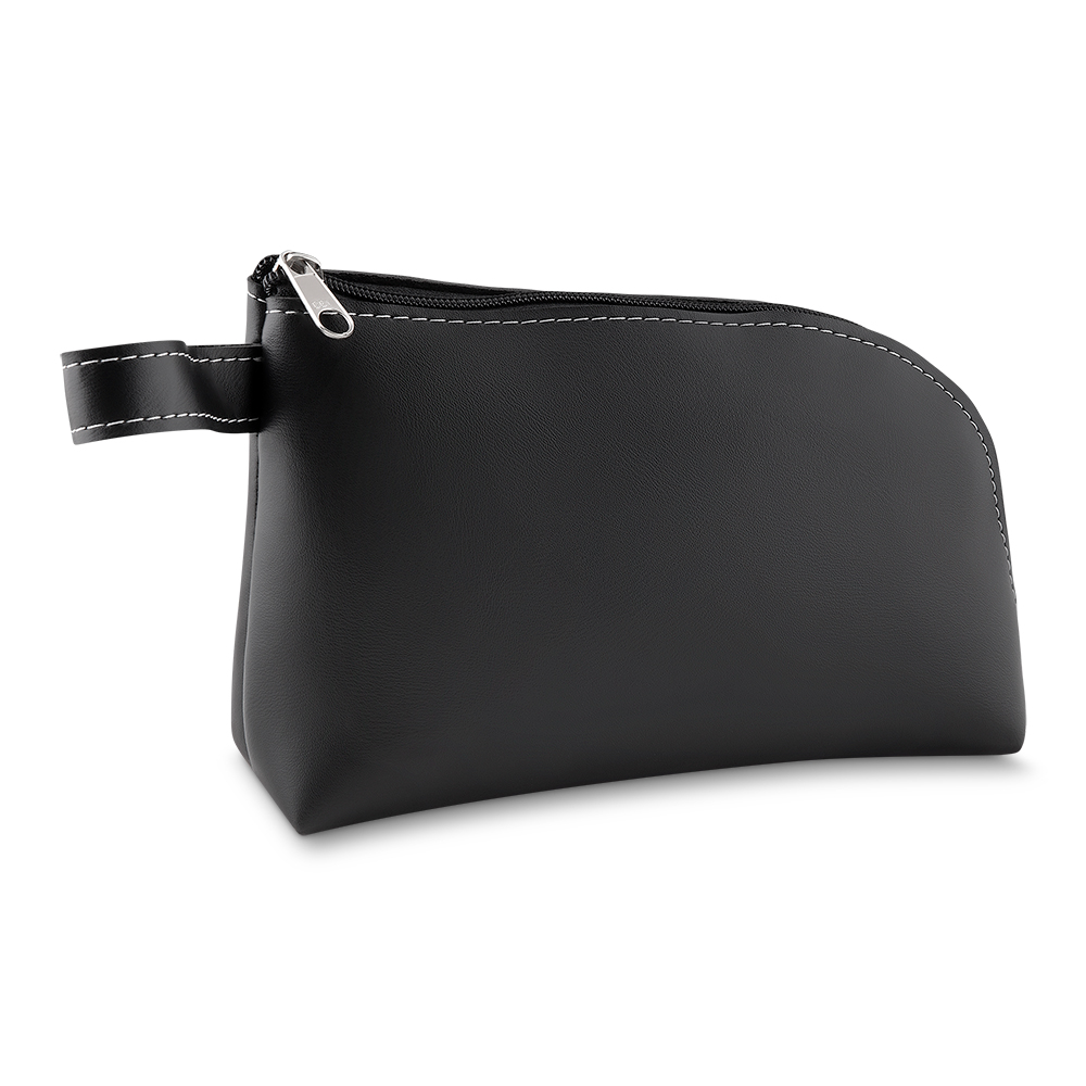 Nécessaire em couro sintético no tecido externo e forro em sintético Bidim com alça lateral. Gravação frontal na opções: serigrafia e plaquinha.