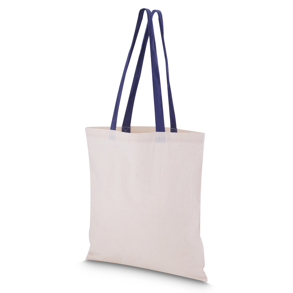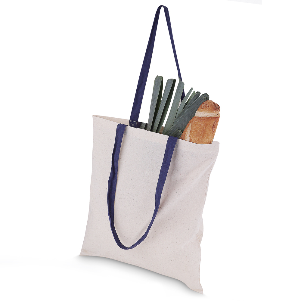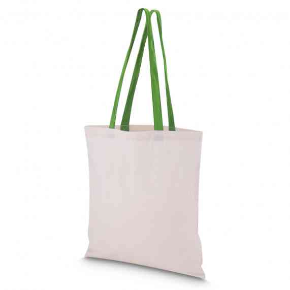 Sacola em algodão cru 140g/m² com alça colorida.