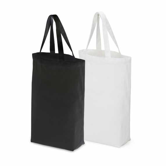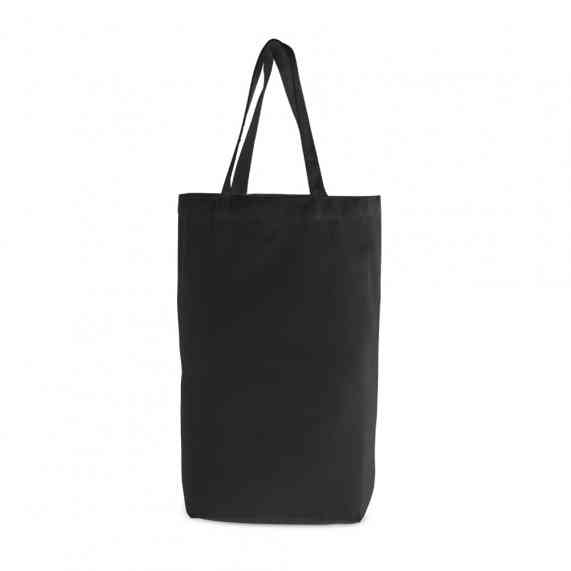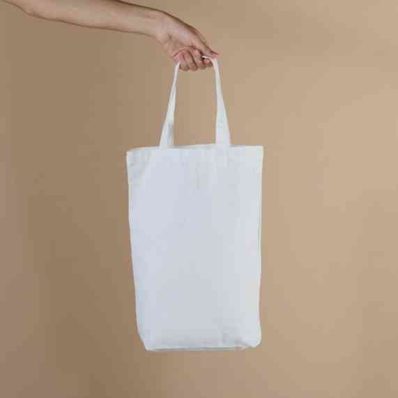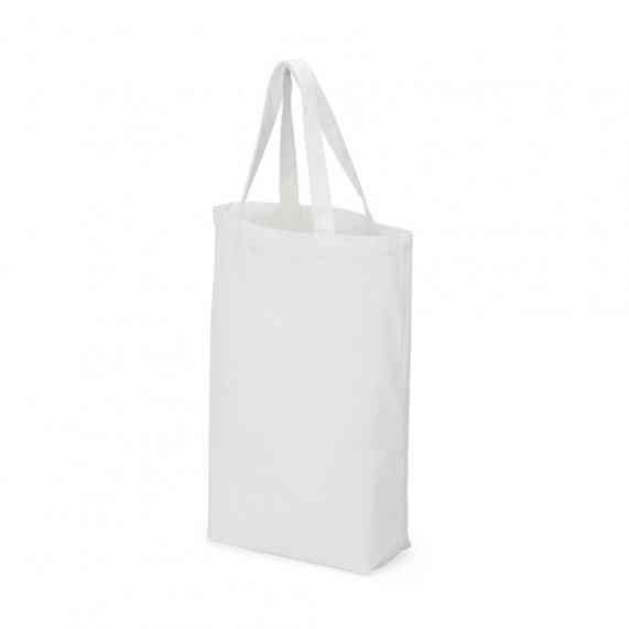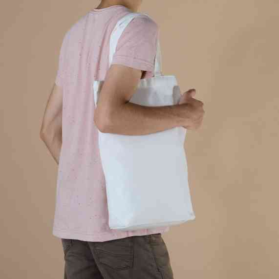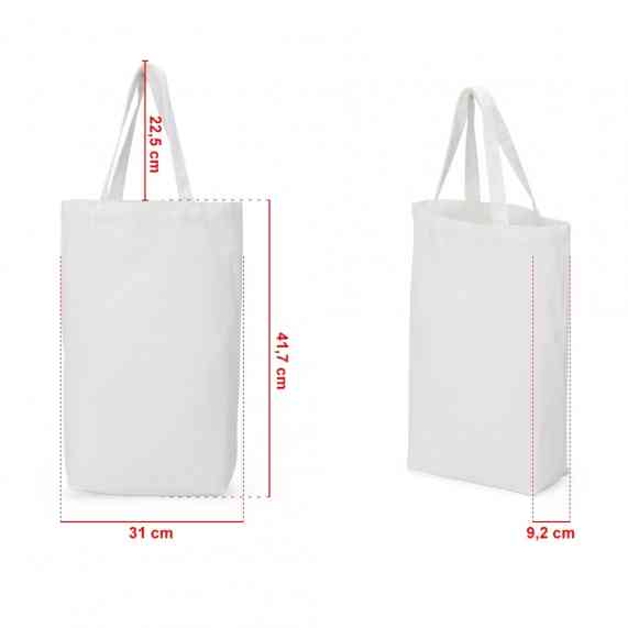 Sacola de algodão 280g/m² com alças costuradas na parte interna.