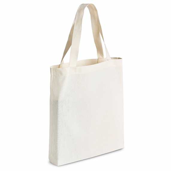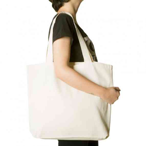 Sacola de algodão com alças costuradas na parte interna.