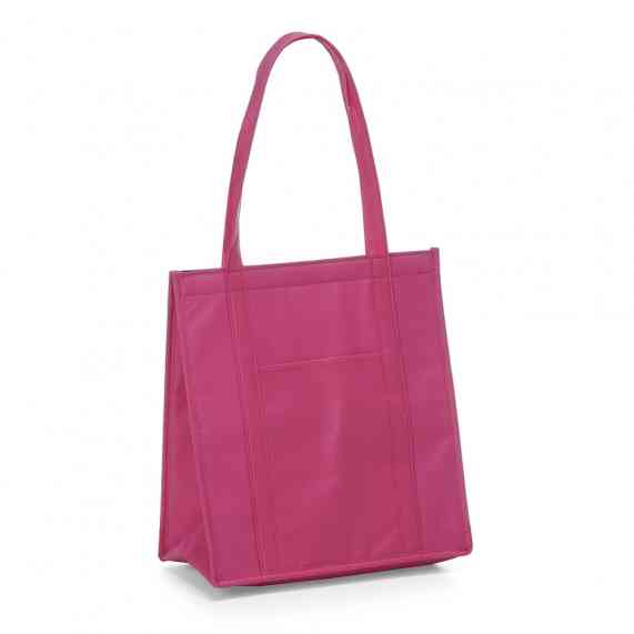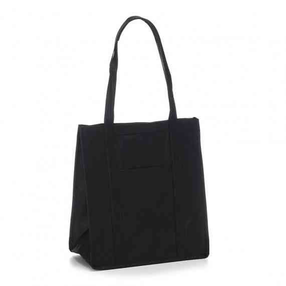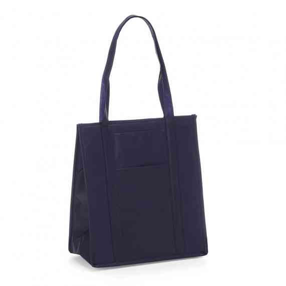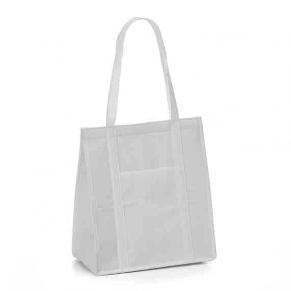 Sacola térmica com capacidade de 18 litros, contém fechamento em velcro e bolso frontal. Obs.: A capacidade de armazenamento com a sacola fechada é de aproximadamente 14 litros.